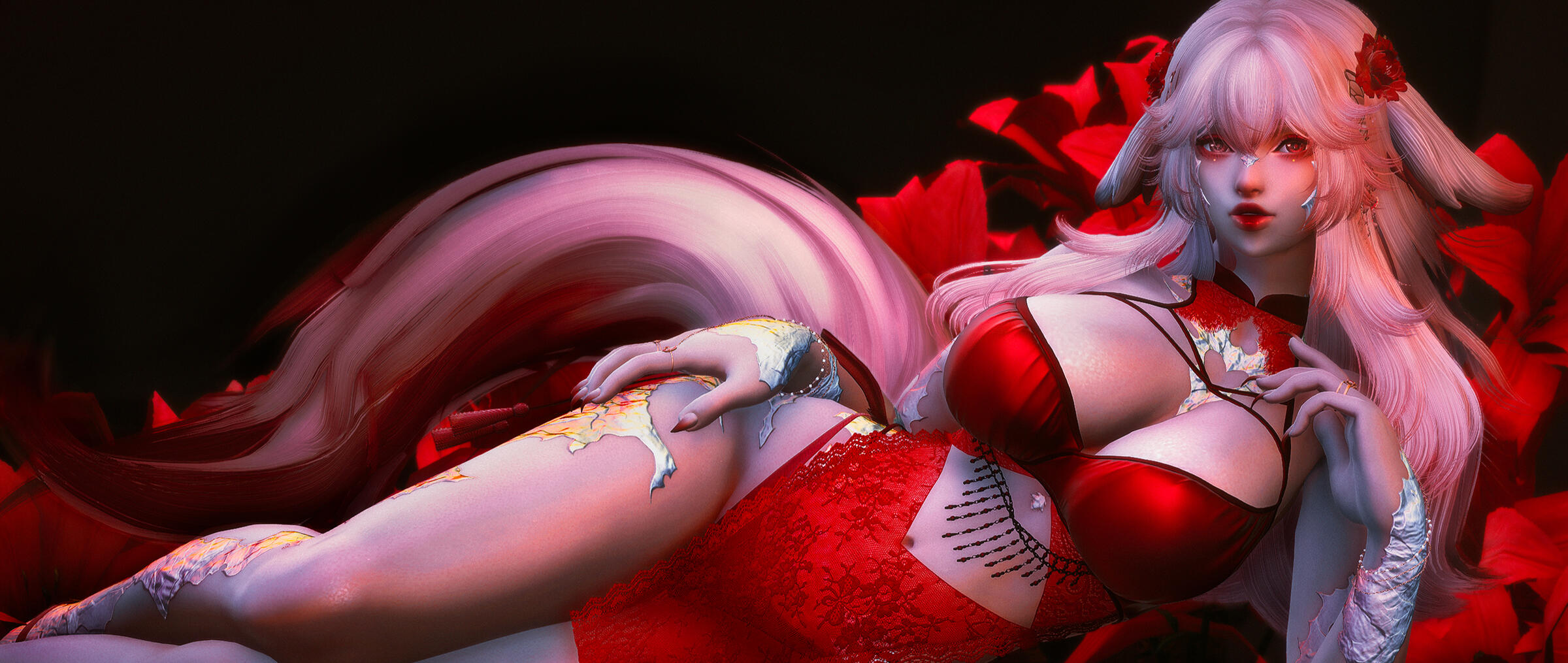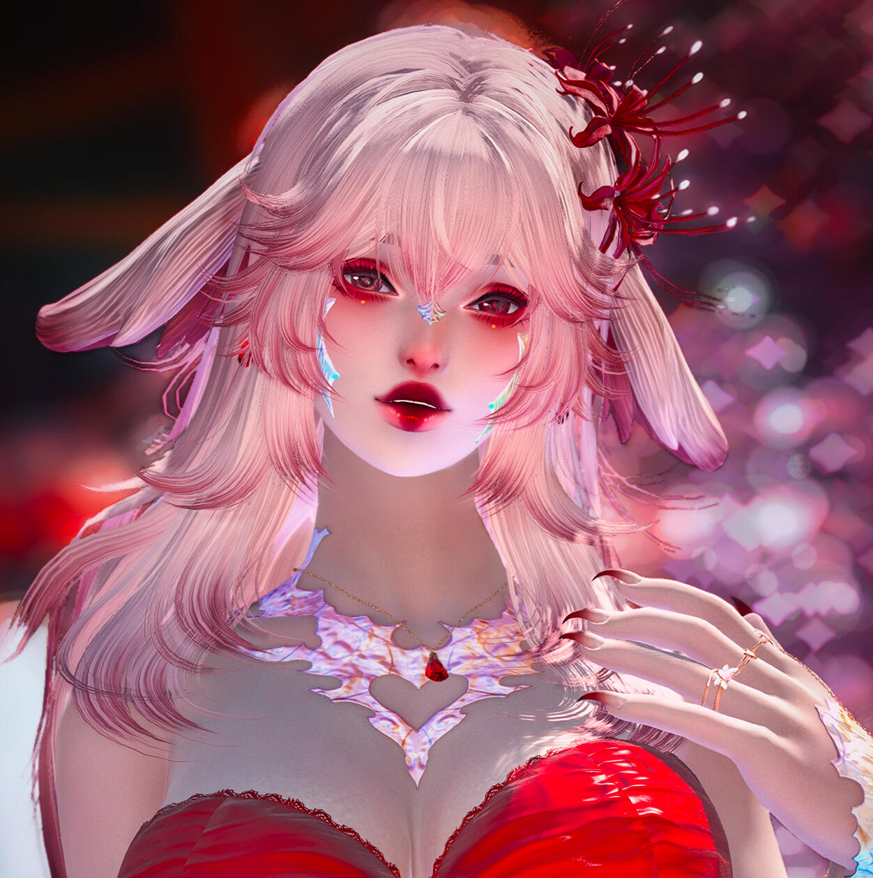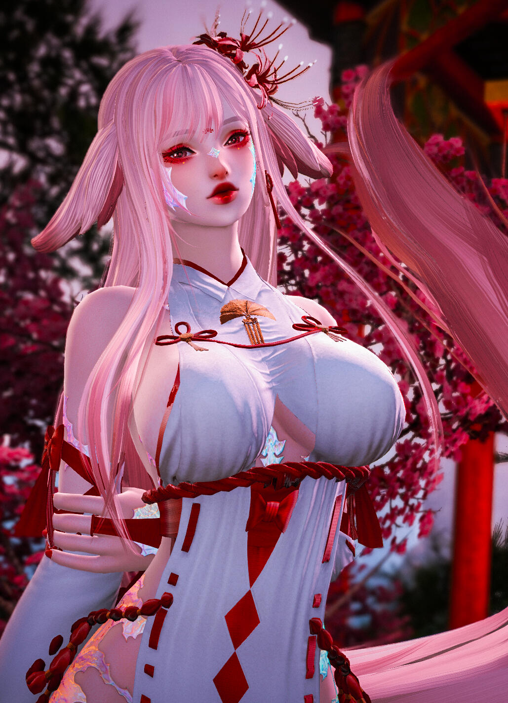 Having started off working the escort scene of Ul'dah for the greater part of two years , Izayoi is skilled in her job, and works hard to please her clients.Those years of hard work have taught her to be beguiling, reading prospective patrons with ease. She molds herself to their wants, putting on a show of emotions and personalities as they try to woo her. Her looks, curves, and teasing smile draw most in with naught but a quirk of her plush lips, and she is well aware of how to use each aspect of herself to her advantage.If one manages to crack that mask, however, what lies beneath is a warm but stubborn girl, willing to work hard to keep herself stable financially. She will rarely give into actual emotional closeness, and shies away from determined affection.Still, despite her wariness of the world, she deeply cares about others within her profession, and works hard to keep them safe, happy, and secure, never wanting anyone to face the horrors of destitution or the chill of the streets.